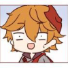 diluc just blinks back at him, confused?? there's a small tabby cat next to him that tilts her head up at childe. ]